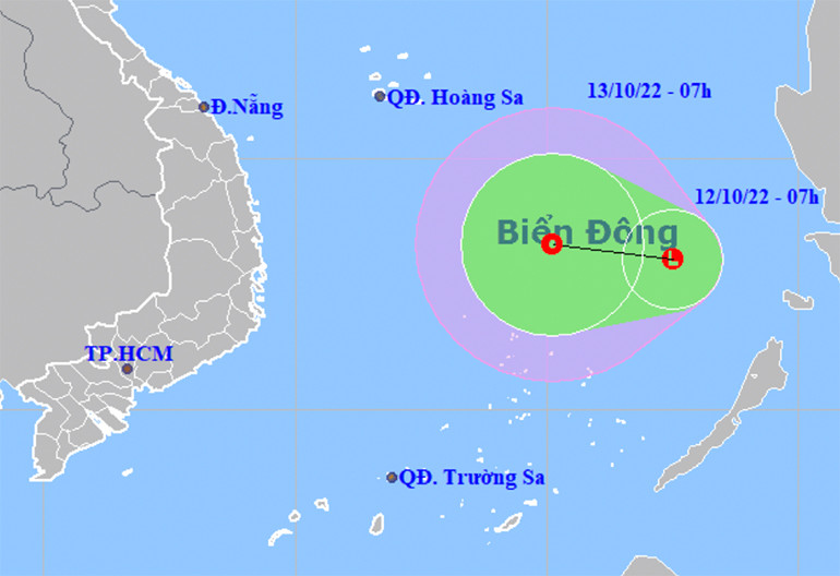 Dự báo trong 24 giờ tới, vùng áp thấp di chuyển theo hướng Tây, mỗi giờ đi được khoảng 10km và khả năng mạnh lên thành áp thấp nhiệt đới. Đến 7h ngày 13/10, tâm áp thấp nhiệt đới cách đảo Song Tử Tây khoảng 200km về phía Bắc Đông Bắc. Sức gió mạnh nhất vùng gần tâm áp thấp nhiệt đới mạnh cấp 6-7 (39-61km/giờ), giật cấp 9.