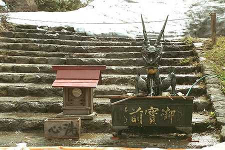 | Cổng vào ngôi chùa trên ngọn núi Yudono ở Yamagata |