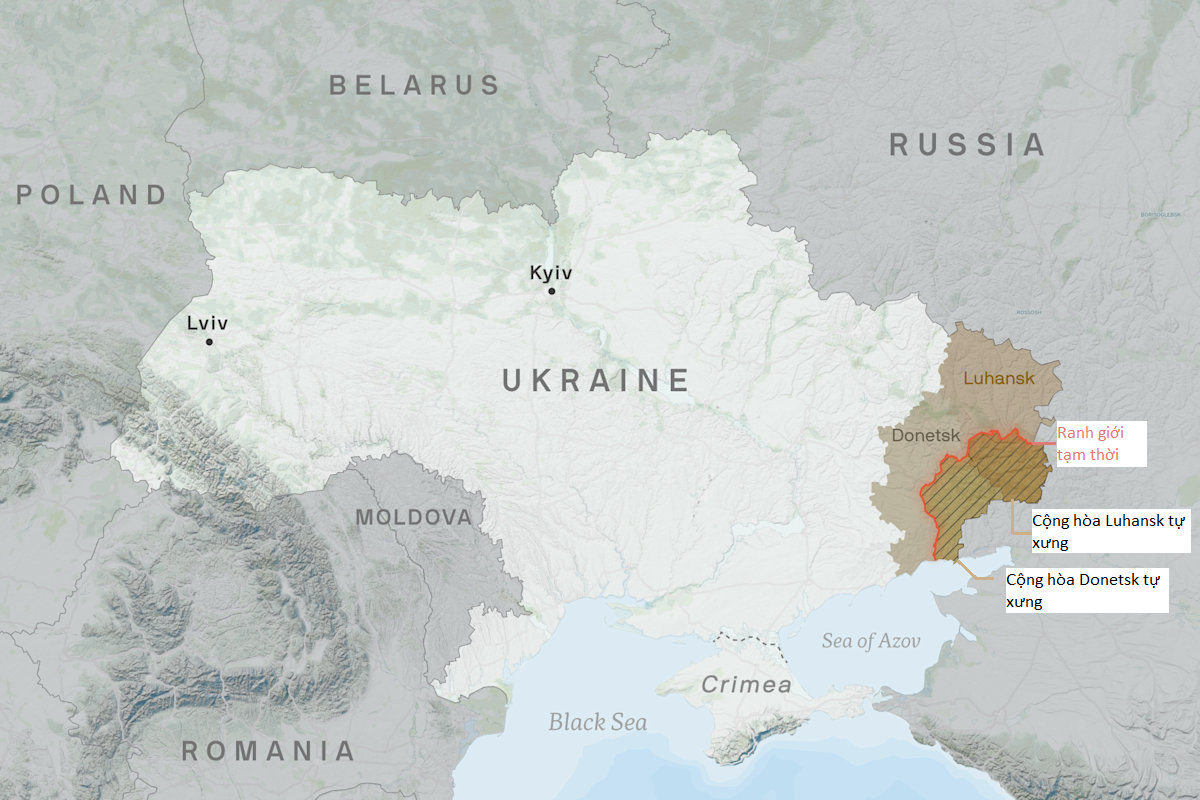 Bản đồ thể hiện khu vực ly khai Ukraine. (Nguồn: Will Chase/TNZT)