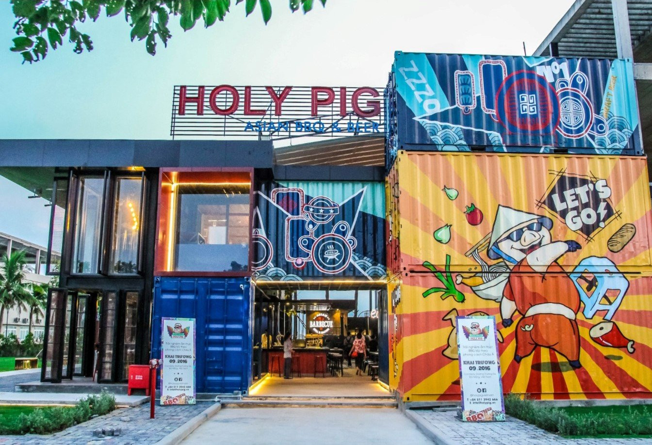 Holy Pig là nơi du khách sẽ có một bữa tiệc nướng ngon miệng và có khoảng thời gian tuyệt vời bên người thân, cùng nhau chia sẻ những câu chuyện đầy màu sắc của cuộc sống. Đây cũng là nơi bố mẹ có thể thoải mái tận hưởng những món ăn hấp dẫn, nhâm nhi cốc bia tươi mát lạnh trong khi con cái được vui đùa thỏa thích tại khu vui chơi dành cho trẻ em hoặc bơi lội tại bể bơi container trong suốt nằm tại ngay trong nhà hàng.