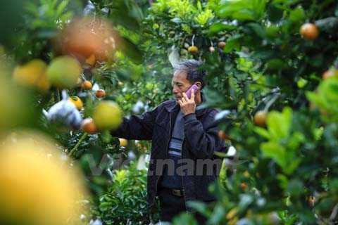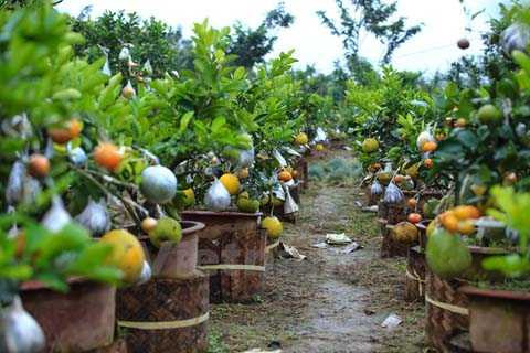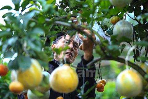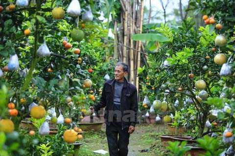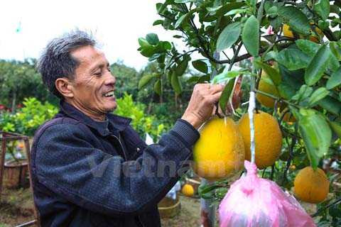 | Trải qua 6 tháng chăm sóc liên tục, đúng vào dịp cận Tết, các cây này sẽ đơm hoa kết trái theo đúng ý ông. (Ảnh: Minh Sơn/Vietnam+) |