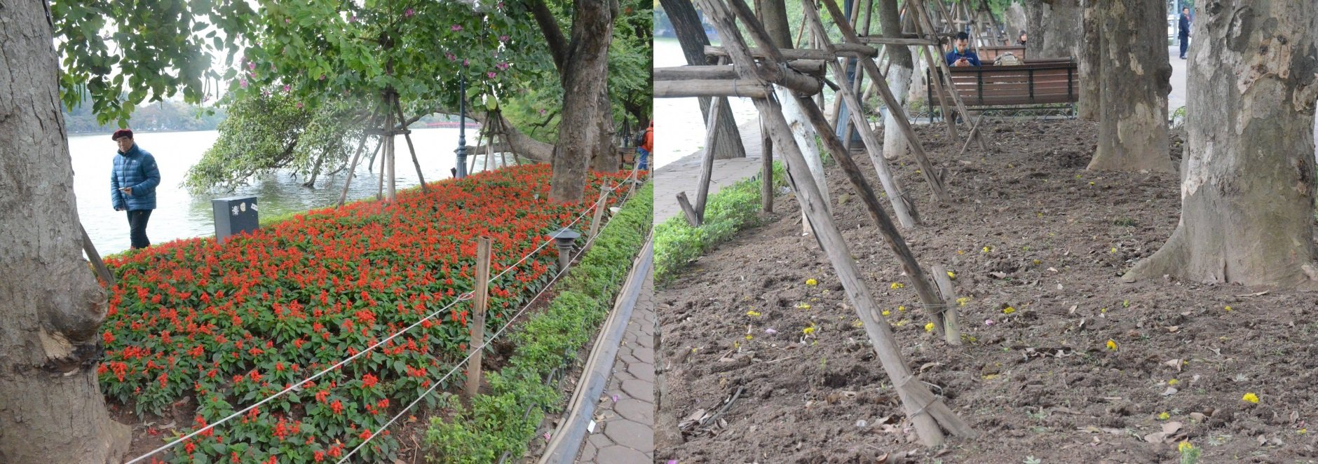 Hiện, Công ty Công viên cây xanh Hà Nội đã cử người đến hồ Hoàn Kiếm để trồng lại số hoa bị người dân giẫm nát để kịp đón Tết Nguyên đán 2019.