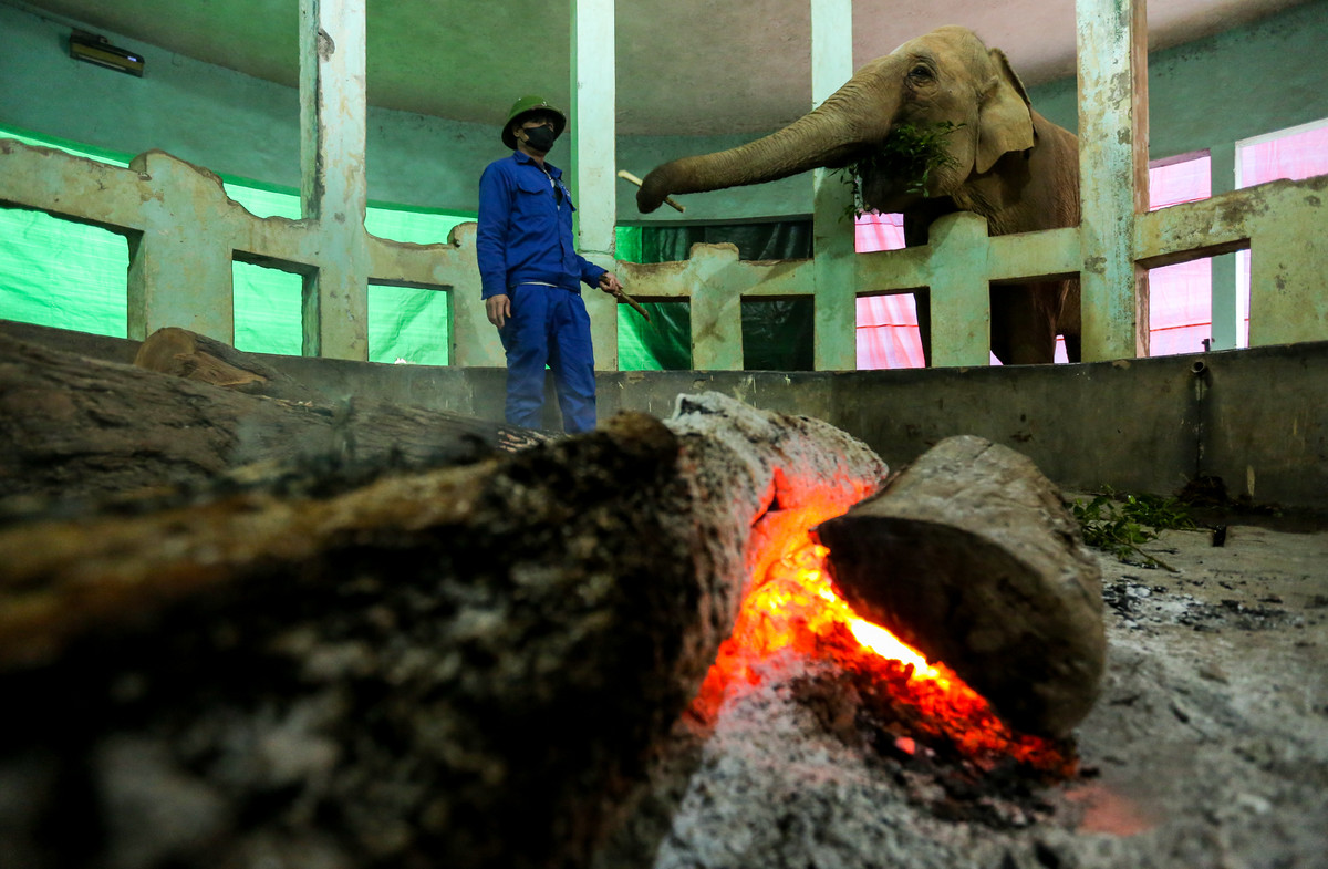 Nhiều khu vực nuôi nhốt các loại động vật lớn như voi, hươu, sư tử, ngựa... đều lắp đặt những tấm bạt, vách ngăn chắn gió và hệ thống sưởi hoặc đốt lửa để sưởi ấm.