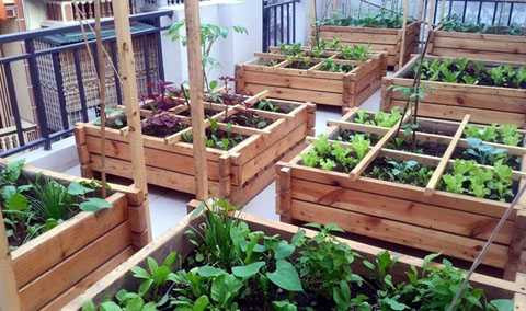 | Thay vì thùng xốp, đại gia chuẩn bị thùng gỗ để trồng rau sạch |
