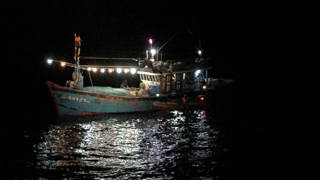 Đến 2h30 ngày 23/9, lực lượng cứu hộ đã tiếp cận tàu ĐNa 90727 TS và các y, bác sỹ nhanh chóng cấp cứu ngư dân Minh ngay ngoài khơi.