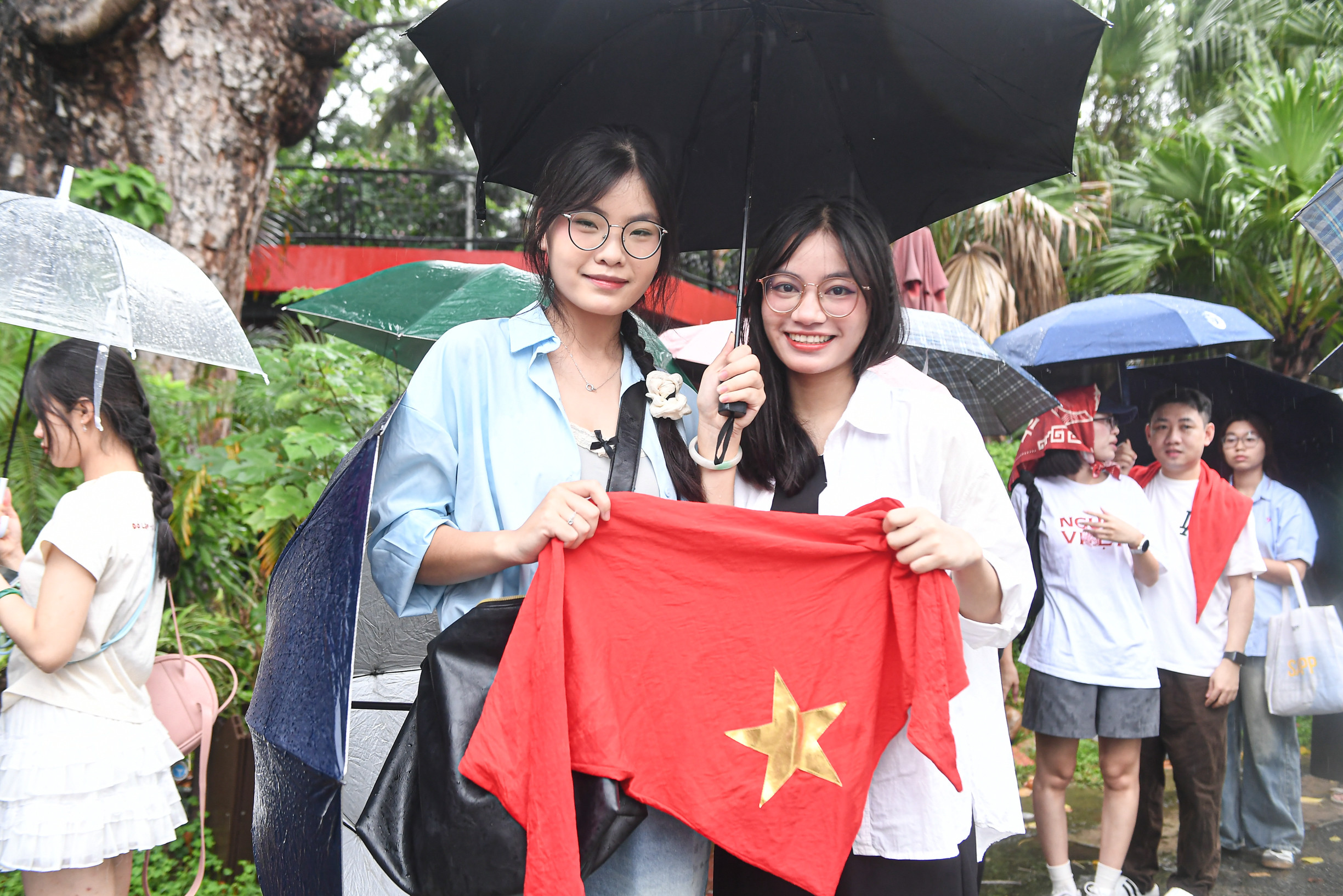 Mặc dù thời tiết có mưa lớn, hàng trăm người vẫn kiên nhẫn xếp hàng đợi nhiều tiếng đồng hồ để trải nghiệm cảm giác thực tế ảo "Trở về thời khắc thiêng liêng", đưa người xem về ngày 2/9/1945.