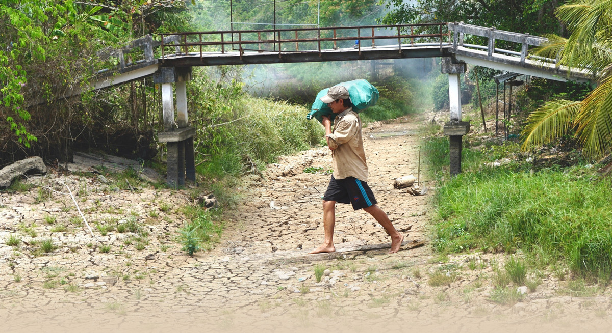 Dòng kênh không còn một giọt nước, đường gập ghềnh đầy hố bẫy, hai loại hình giao thông tại ấp đứt gãy hoàn toàn. Không chỉ Liêm hầu hết người dân trong ấp hiện chỉ có thể di chuyển bằng cách đi bộ.