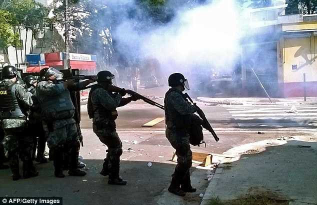 Cảnh sát đã bắn hơi cay, đạn cao su và bom tiếng ồn để giải tán hơn 100 người biểu tình tập trung tại phía đông Sao Paulo, cách SVĐ Corinthians Arena, nơi diễn ra lễ khai mạc và trận mở màn, khoảng 10 km.