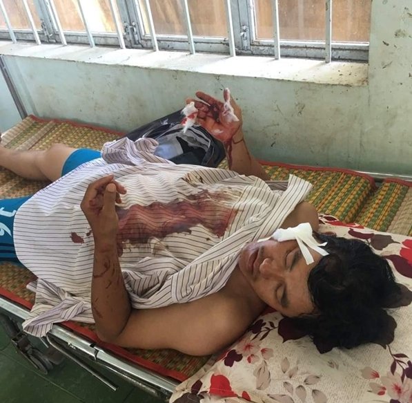 Anh Hoàng được đưa đến bệnh viện cấp cứu sau khi bị chém vào mặt (Ảnh: CTV)