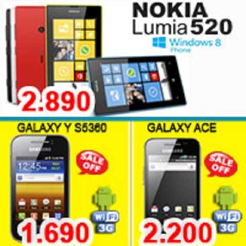 Các sản phẩm điện thoại chính hãng như Nokia Lumia 520, Lumia 720, Samsung ace S5830, galaxy S5360 cũng khuyến mãi giá hấp dẫn, giảm đáng kể so với thị trường.