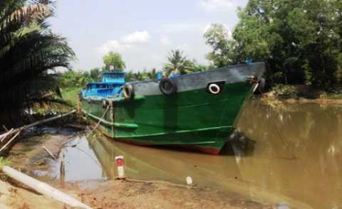 | Chiếc xà lan gây sự cố đang bị tạm giữ để điều tra |