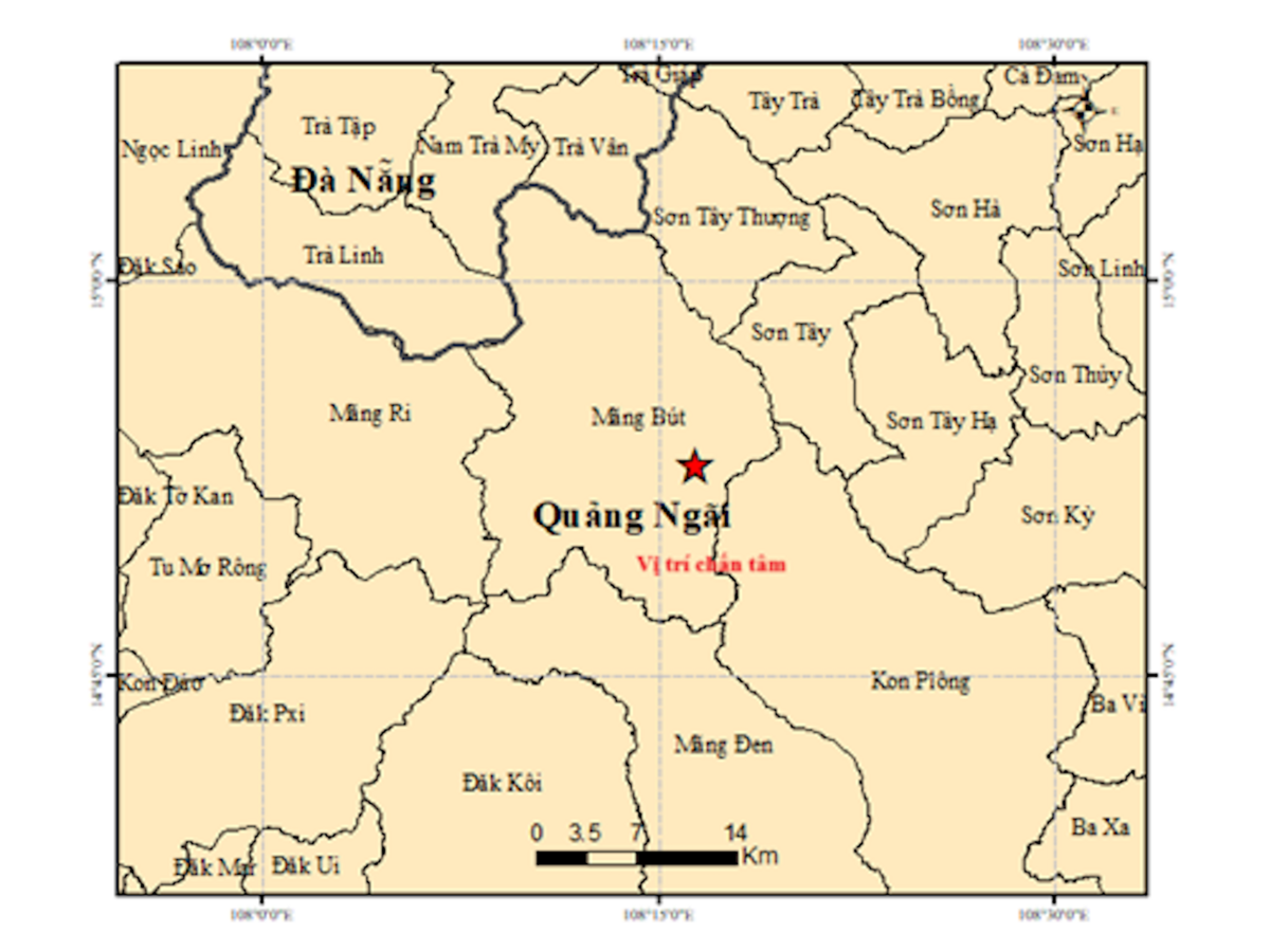 Cụ thể, trận động đất có độ lớn 3.6 độ richter, xảy ra khoảng lúc 14h48, có tọa độ 14.883 độ Vĩ Bắc, 108.274 độ Kinh Đông, độ sâu chấn tiêu khoảng 8,1 km.