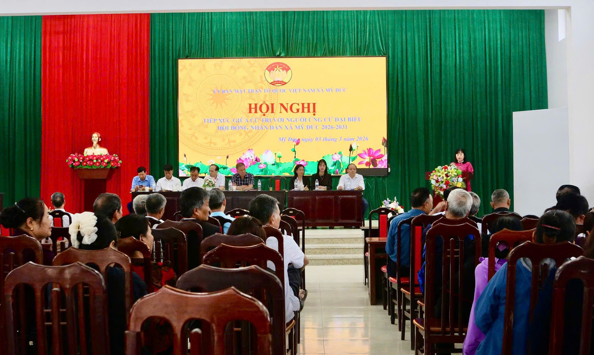 Tại hội nghị, các cử tri đã nghe tiểu sử tóm tắt của 8 ứng cử viên đại biểu HĐND xã Mỹ Đức nhiệm kỳ 2026-2031, thuộc tổ bầu cử số 3 gồm: Ông Nguyễn Quang Đường (SN 1971), Phó Bí thư Đảng ủy, Chủ tịch UBND xã Mỹ Đức; ông Phạm Trọng Của (SN 1977), Phó Chủ tịch UBND xã Mỹ Đức; ông Phạm Đức Ngọc (SN 1981), Trưởng phòng Văn hóa - Xã hội xã Mỹ Đức; ông Nguyễn Văn Bình (SN 1974), Phó Trưởng ban Văn hóa - Xã hội, HĐND xã; ông Nguyễn Văn Thành (SN 1969), Phó Bí thư chi bộ, Trưởng thôn Hà Xá; bà Nguyễn Thị Kim Dung (SN 1993), giáo viên Trường Mầm non Đại Nghĩa; bà Nguyễn Thị Hiền (SN 1991), giáo viên Trường Tiểu học Hợp Thanh A; bà Phạm Thị Hiền (SN 1991), giáo viên Trường Mầm non Hợp Thanh.