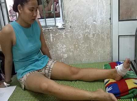 | Chị Trang trúng nhiều đạn ở cả 2 bên chân. |