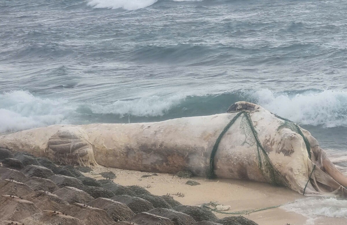 Xác cá voi dạt vào bờ biển Lý Sơn. (Ảnh: L.S)