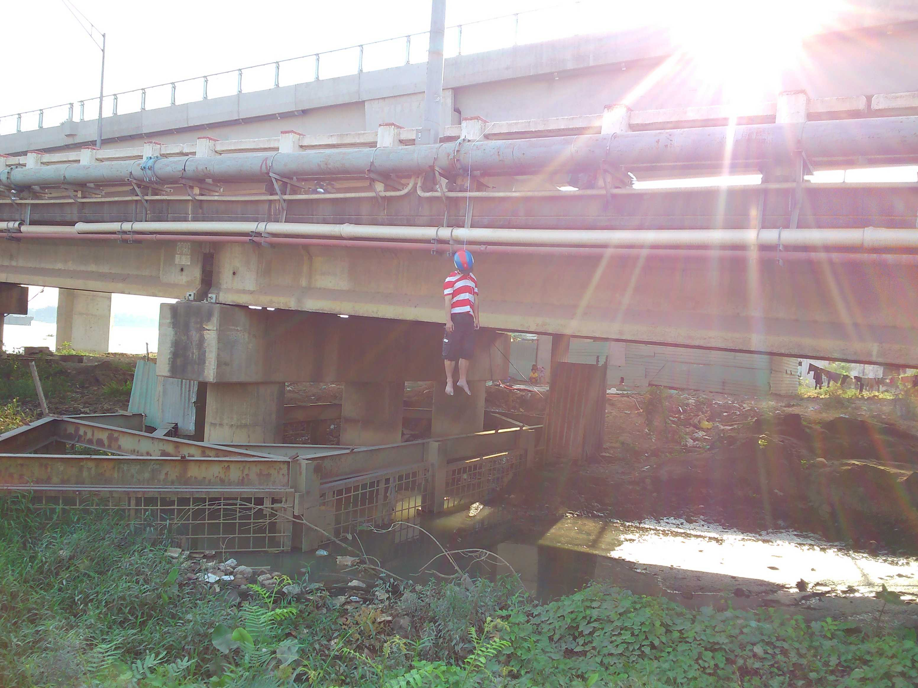 Hiện trường phát hiện xác người treo lơ lửng trên thành cầu, đầu đội mũ bảo hiểm