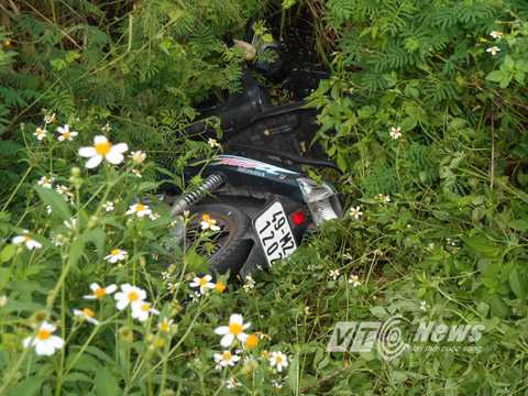 Nạn nhân nằm chết trong tư thế đang lái xe, bị mất lái lao xuống đầm lầy, bàn tay trái vẫn còn trong tư thế nắm ghi-đông xe, đầu úp mặt xuống nước, xe nhô phần đuôi lên.