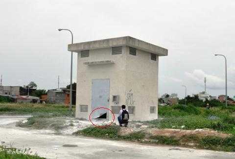 Tủ điện nơi người nhặt ve chai phát hiện xác chết (Ảnh: Phạm Nguyễn)