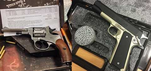 Tiến hành kiểm tra, lực lượng hải quan phát hiện bên trong có 2 khẩu súng ngắn gồm: một khẩu mang nhãn hiệu Winchester, số hiệu 13C01516, xuất xứ Nhật; và 1 khẩu súng hiệu Gietcher, số hiệu 31NGR1271; 700 viên đạn bi bằng kim loại; 7 ống tiếp đạn bằng đồng.