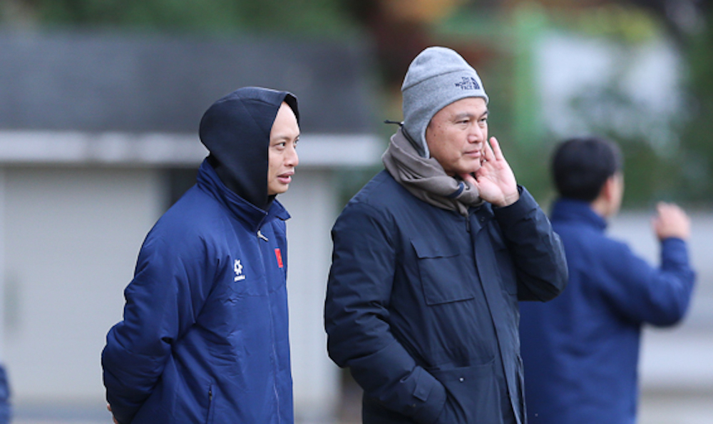 Ông Trần Anh Tú (phải) là trưởng đoàn của đội tuyển Việt Nam tại AFF Cup 2024.