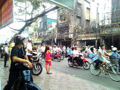 | Chiều 31/12, nhiều người dân vẫn còn tò mò theo dõi hiện trường vụ cháy. |