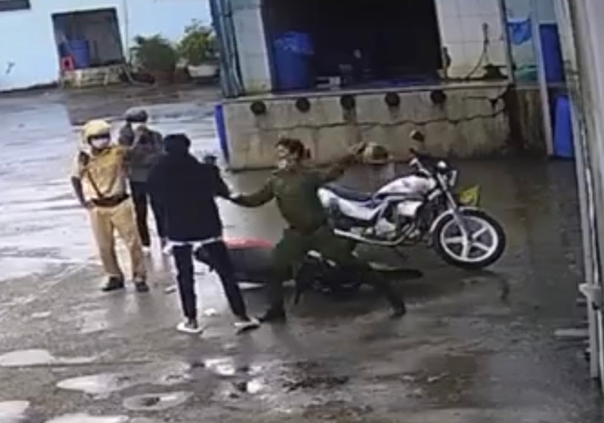 Hai chiến sĩ đánh người cầm lái xe nghi vi phạm luật giao thông. (Ảnh chụp màn hình)