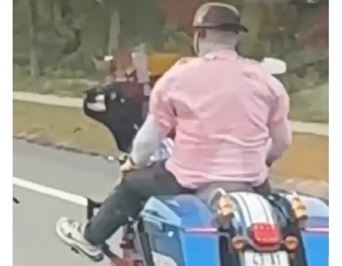 Người đàn ông lái xe phân khối lớn buông cả hai tay. (Ảnh: Cắt từ clip)