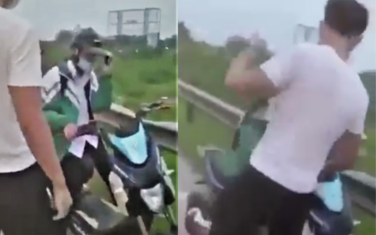 Trước đó, mạng xã hội lan truyền clip khoảng 18 giây ghi lại cảnh một học sinh đang ngồi trên xe đạp điện thì bị nam thanh niên mặc áo trắng xông tới dùng mũ bảo hiểm đánh mạnh vào vùng đầu. Không dừng lại ở đó, kẻ này còn dùng tay đấm liên tiếp vào mặt nam sinh trước sự chứng kiến của nhiều người.