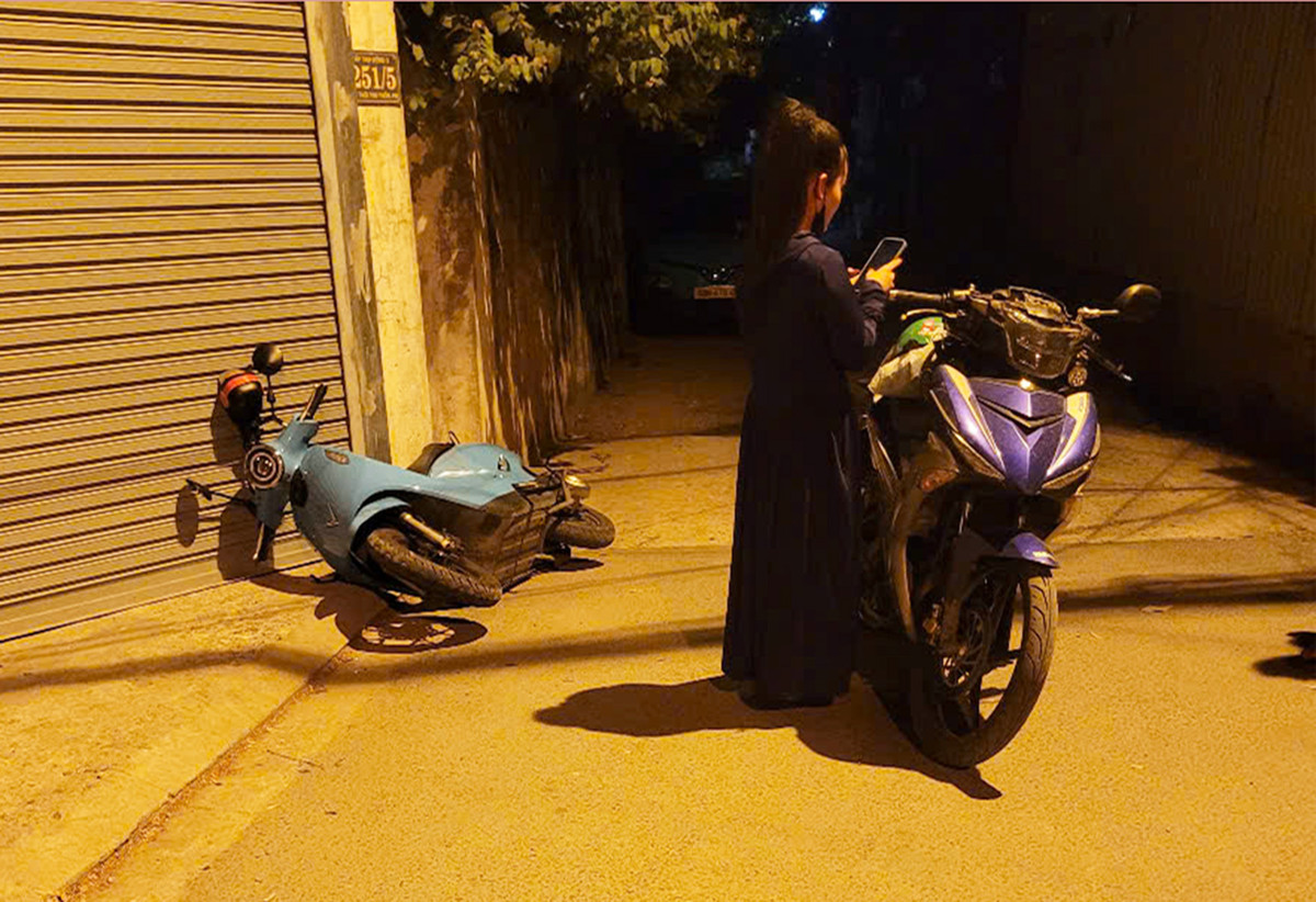 Chị N. bỏ lại xe máy khi bị đuổi đánh.