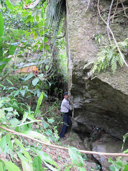 Hai chúng tôi tiến đến chân núi, gửi xe ở một ngôi nhà ven đường. Hưởng bảo, đây là một số hộ dân trong các bản sâu xa vừa hạ sơn định cư bên đường liên xã, họ không biết nhiều về hang thiêng đâu. Nhưng thấy chúng tôi hỏi thăm đường lên núi, đám người đang bận rộn đều ngừng cả lại, trố mắt nhìn, và rụt rè chỉ tay lên con dốc sau nhà.