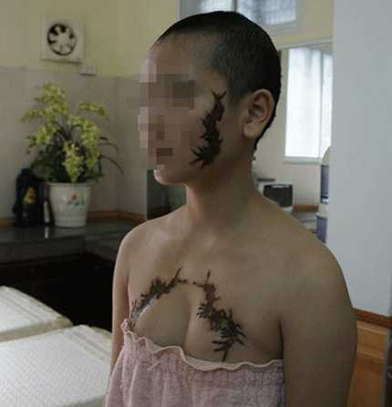 | Nguyễn Thị G. với những hình xăm gớm ghiếc |