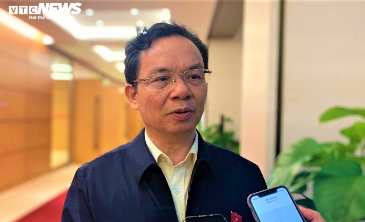 Đại biểu Hoàng Văn Cường trả lời báo chí bên hành lang Quốc hội.