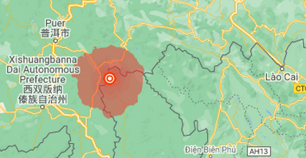Trận động đất có độ lớn 5.5 xảy ra tại vị trí có tọa độ 22.240 độ vĩ Bắc, 101.710 độ kinh Đông.