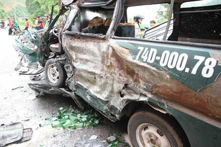 Nguồn tin của PV VTC News cho biết, ông Trần Đình Lợi (ngụ thành phố Đông Hà, tỉnh Quảng Trị) điều khiển xe ô tô khách loại 12 chỗ ngồi (đã hạ tải thành xe chở hàng) chạy hướng thị trấn Lao Bảo (huyện Hướng Hóa) về thành phố Đông Hà. Đến địa điểm trên thì va chạm với xe container BKS 3C-035.74 kéo theo rơ moóc.