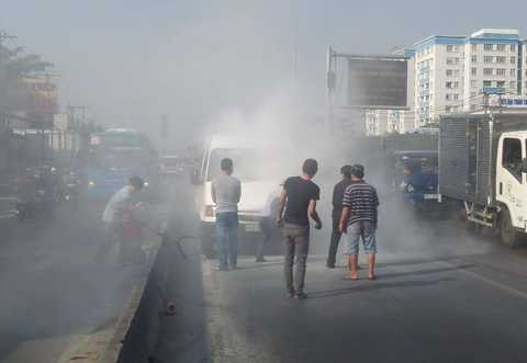 Một số tài xế xe khác đang chạy trên đường cùng với người dân thấy cháy cũng đã nhanh chóng dùng bình chữa cháy chạy đến hỗ trợ và khống chế đám cháy kịp thời.