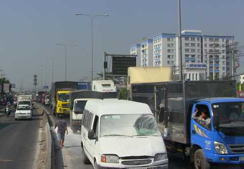 | Quốc lộ 1 kẹt xe nghiêm trọng. |