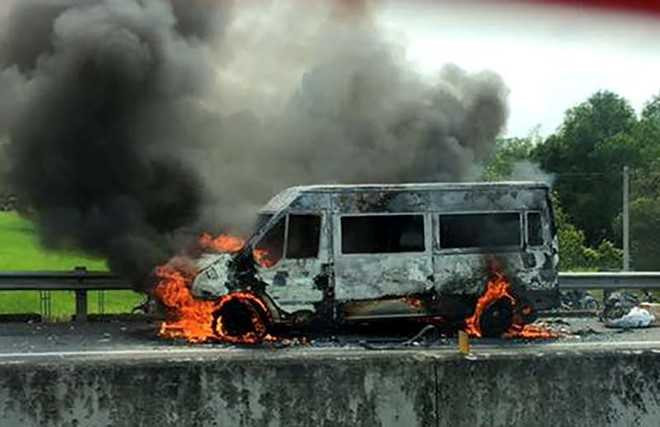 Thời điểm trên, xe khách 16 chỗ chở khoảng 14 người chạy trên cao tốc TP.HCM – Trung Lương hướng về TP.HCM. Đến địa điểm trên, tài xế phát hiện xe cháy đã nhanh chóng tấp vào làn đường khẩn cấp, mở cửa để tất cả hành khách kịp thoát ra ngoài.
