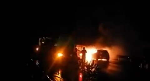 | Chiếc xe bốc cháy dữ dội trên cao tốc |