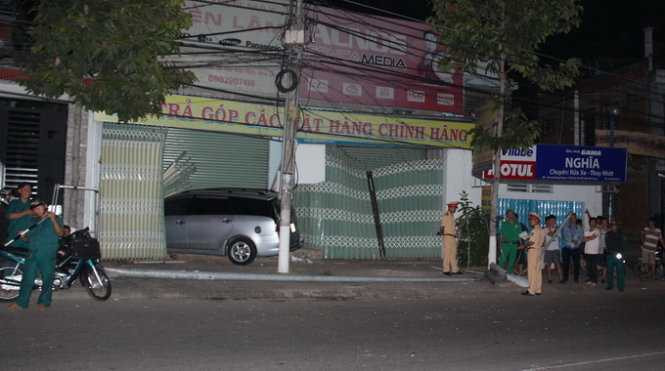 Tại hiện trường tới 1h ngày 6/3, xe bảy chỗ vẫn bị mắc kẹt trong đống cửa gãy nát của nhà người dân. Sau đó lực lượng chức năng phải dùng xe cẩu mới kéo được ô tô ra khỏi ngôi nhà. Trên mặt đường Cách mạng Tháng Tám rớt đầy kính vỡ và có một vết xe thắng gấp rất rõ.