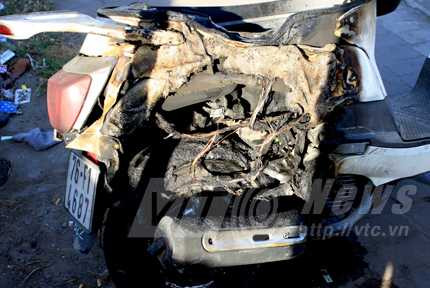 | Chiếc xe máy bị cháy đen phần đuôi |