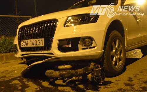 | Chiếc xe máy nát vụn dưới gầm ô tô, bị kéo lê nhiều km |