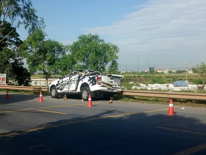Vào khoảng 3h30 cùng ngày, xe ô tô bán tải đang chạy trên Quốc lộ 38B đoạn qua thôn Bái Hạ (xã Toàn Thắng, Gia Lộc) thì va chạm với xe ô tô đang dừng ở mé đường. Sau cú tông, ô tô bán tải tiếp tục chạy bám theo dải lan can sắt mới dừng lại.