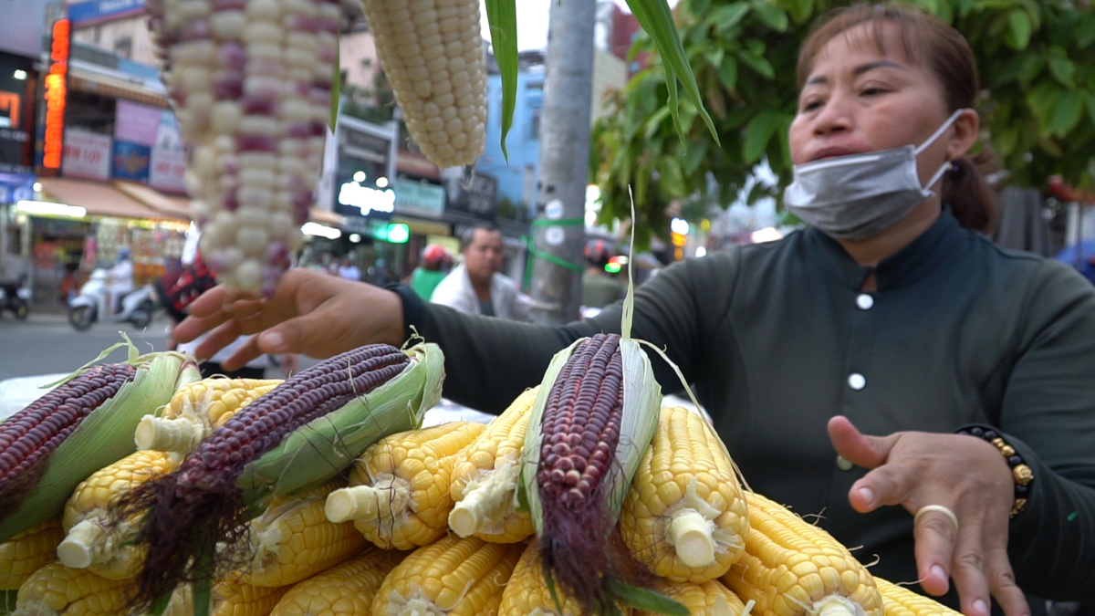 Xe bắp nữ hoàng đỏ bán trên vỉa hè của chị Thái Thị Mộng Hà (quận 6, TP.HCM) thu mỗi ngày hơn 1 triệu đồng, một trái giá 20.000 đồng, cao gấp đôi so với bắp Mỹ.