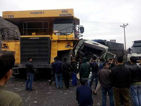 Vào trưa ngày hôm nay, 24/2, tại mỏ than Cao Sơn thuộc Cẩm Phả, Quảng Ninh, đã xảy ra một vụ tai nạn giữa 2 chiếc xe chở than. Trong đó, chiếc xe ben mang biển kiểm soát 29C-203.08 đã tông vào bên sườn "siêu xe tải" Komatsu HD785 màu vàng đang vận hành trong mỏ.