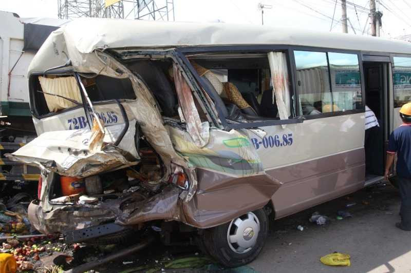 Khi tới ngã ba Nhơn Trạch thì chiếc xe dừng lại chờ đèn tín hiệu. Hàng chục phương tiện xe máy và ô tô khác cũng dừng lại chờ đèn giao thông. Bất ngờ chiếc xe ben chở đầy đá BKS 60S- 4819 do tài xế tên Đức (quê Đồng Nai) chạy từ phía sau tới với tốc độ kinh hoàng, bị mất lái đâm cực mạnh vào đuôi xe khách.