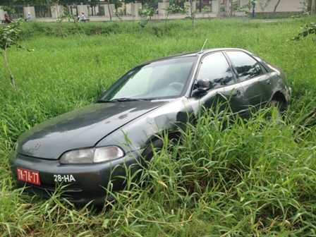 | Ô tô biển đỏ nằm dưới đám sình lầy. |