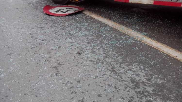 Ghi nhận của phóng viên tại hiện trường, thanh chắn ngang cầu bị đổ sập đè lên cabin ô tô cẩu khiến toàn bộ phần kính của chiếc xe này vỡ tan. Cách đó không xa, chiếc xe máy nằm chỏng chơ giữa đường.