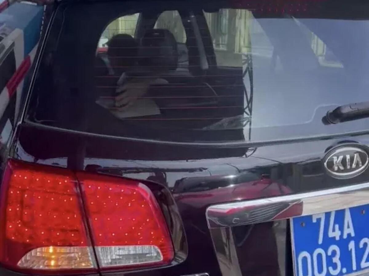 Chiếc xe biển xanh của Chi cục Thuỷ lợi Quảng Trị bị phản ánh không chịu đóng phí qua trạm BOT Bắc hầm Hải Vân và gây ách tắc giao thông.