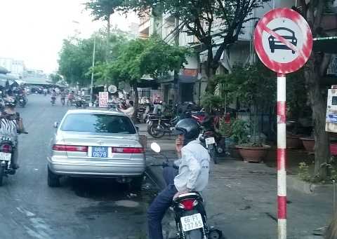 Theo đó, hình ảnh được chụp ngày 18/4/2014 tại ngã tư Cách Mạng Tháng Tám - Hùng Vương TP.Cao Lãnh, tỉnh Đồng Tháp. Chiếc xe biển xanh 66A-0678 ngang nhiên đỗ dưới làn đường có biển cấm ô tô 4 chỗ.