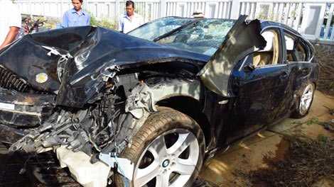 Sau khi gây tai nạn, chiếc BMW bị hư hỏng nặng ở phần mũi phía trước bên ngoài vì cú đâm vào trụ đèn chiếu sáng. Tất cả các cửa kính đều bị vỡ vụn. Các túi khí đều bung ra. Trong khi đó, hầu như máy móc chỉ hư hỏng nhẹ.